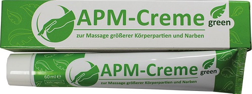 Tipp: Da die APM-Creme green grundsätzlich den identischen Anwendungsbereich wie die klassische APM-Creme hat, gilt auch hier: Der Patient wird aufgefordert, möglichst zwei Mal pro Tag die Narben mit der APM-Creme einzucremen. Mit der regelmäßigen Eigenmassage des Narbengewebes kann der Patient zusätzlich die Durchblutung im Narbenbereich anregen. Regelmäßiges Eincremen von Händen und Füßen sorgt schon allein durch den dabei erzielten Massageeffekt für ein wohliges Wärmegefühl.