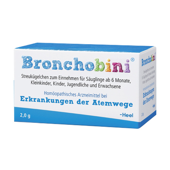 Die Kinderarznei-Reihe „Bambini“ von Heel beinhaltet vier Arzneimittel, welche speziell für Kinder entwickelt wurde. Bronchobini, Flatulini, Lunafini und Cutacalmi helfen gegen häufige Kinderbeschwerden. Alle Produkte von Bambini Kinderarznei sind rein natürlich. Aufgrund dessen sind die vier Produkte auch schon für Kinder und Babys ab 0 bzw. 6 Monaten geeignet. Die Bambini Kinderarznei-Reihe kann Ihrem Kind in Form von kindgerechten Globuli im praktischen Dosierspender verabreicht werden.Bronchobini Heel - bei Erkrankungen der Atemwege