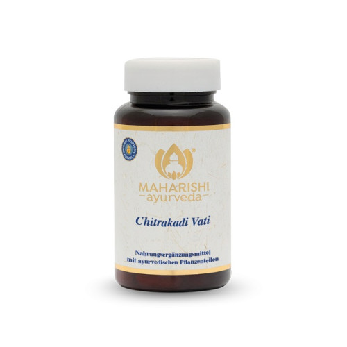 Maharishi Ayurveda Europe B.V.Chitrak oder Plumbago zeylanica gehört zu den Hauptbestandteilen dieser ayurvedischen Rezeptur und ist eine der ältesten ayurvedischen Pflanzen. Ihr Geschmack ist scharf, sie weist leichte, trockene und Pitta-vermehrende Eigenschaften auf. Chitrakadi Vati enthält auch viele Gewürze, u. a. schwarzer Pfeffer - „Pippali“ (Piper longum, der lange Pfeffer), Piper chaba, eine Variante des langen Pfeffers, Ingwer und Asafoetida. All diese Gewürze unterstützen laut Ayurveda Verdauung und Agni (das Verdauungsfeuer). Zudem helfen verschiedene ayurvedische Salze, Pitta zu balancieren.