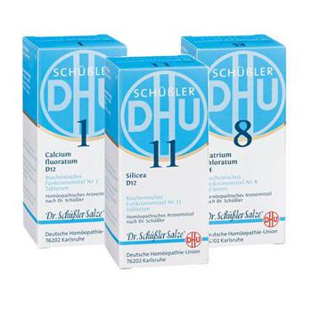 Gönnen Sie Haut und Haaren eine Erholung und kombinieren Sie clever: DHU Schüßler Salze Nr. 1 + 8 + 11 als Tabletten.