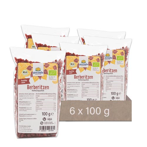 Berberitzen sind mit ihrem erfrischenden säuerlichen Geschmack eine ideale Zutat in Müslis und orientalischen Gerichten. Sie sind ungeschwefelt und haben Rohkostqualität.