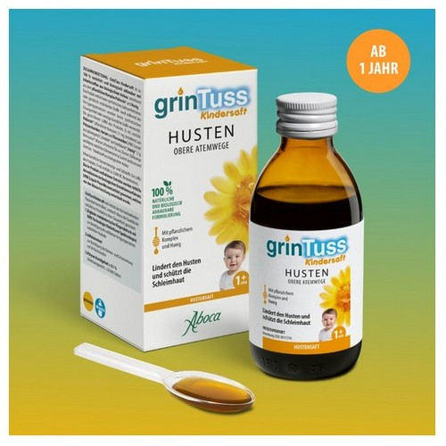Grintuss Kindersaft ist für die Behandlung von Husten geeignet, welcher auf die Reizung der Schleimhaut in den oberen Atemwegen zurückzuführen ist. Geeignet für Kindern ab 1 Jahr.