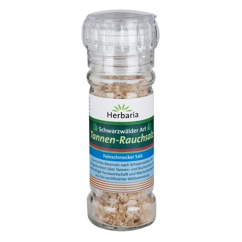 Herbaria Tannen-Rauchsalz ist ein grobes Meersalz von einem Naturschutzgebiet in Spanien. Es wurde nach schwarzwälder Art kaltgeräuchert über Tannen- und Buchenholz aus nachhaltiger Forstwirtschaft und Wacholderbeeren aus bio-zertifizierter Wildsammlung. Durch das natürlich intensive rauchige Aroma, ist dieses Rauchsalz ideal als Steak- oder Grillsalz, als herzhafte Note für vegetarische und vegane Gerichte sowie als natürliches Raucharoma für BBQ-Marinaden, Soßen, Eintöpfe oder Eierspeisen. In der Mühle kann das Salz zu jederzeit frisch direkt über das Gericht gemahlen werden.